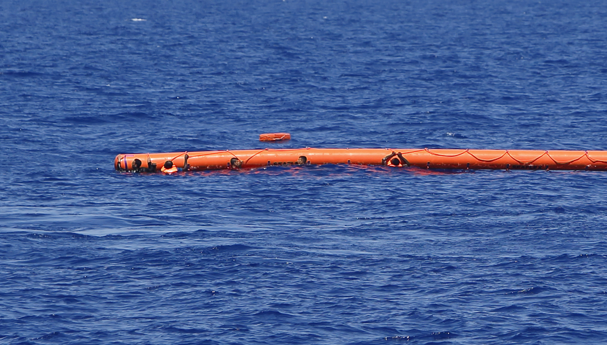 The Phoenix launched its two RHIBs, each towing 25 metre long CentiFloats, inflatable buoyancy tubes which people in the water could hang onto.